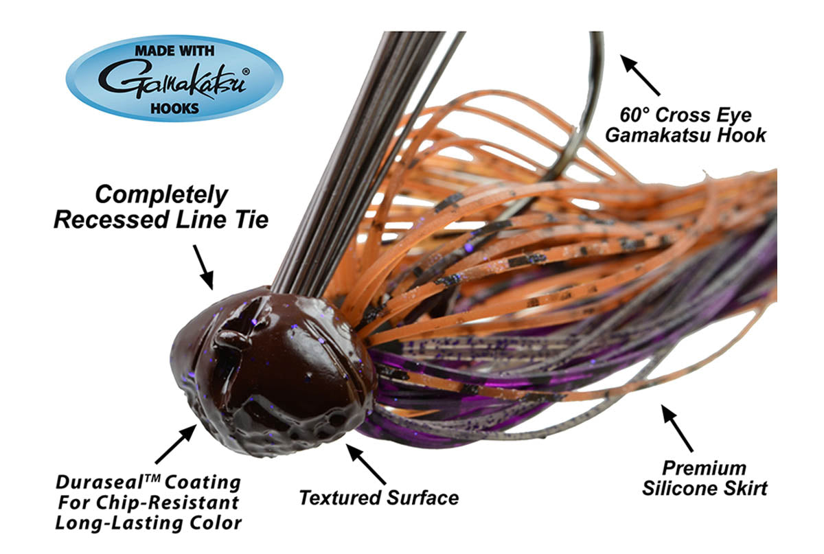 The Picasso Fantasy Football Jig has an almost completely recessed line tie to assure the jig "rolls" out of any rocky cover without hanging up. The textured head creates traction causing the jig to rock back and forth instead of just "skidding" or "skating" across the bottom.