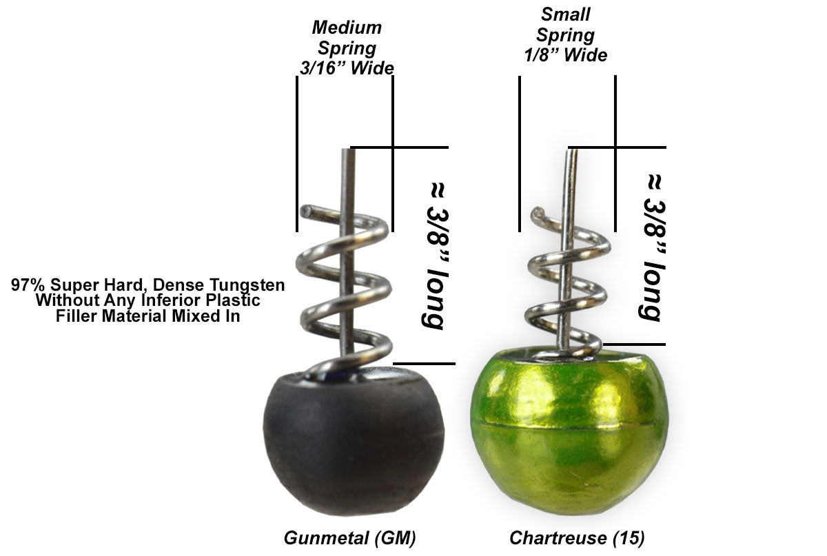 The Picasso Tungsten Neko Weight offers an innovative screw locking system that firmly secures your soft plastics and reduces loosening on the cast or while fighting fish. The exposed head is constructed from high density 97% tungsten that provides optimal feedback of bottom structure and helps detect very subtle bites. Available in two spring diameters to fit a wide range of plastics. Small spring-recommended for thinner diameter plastics such as finesse worms. Medium spring-recommended for thicker diameter worms. Sold in 3 packs