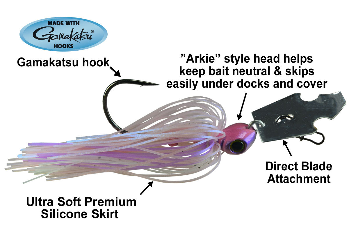 The Picasso Gen 2 Shock Blade features a cutting-edge blade design that creates an instant vibration, accompanied by an intermittent, unpredictable “kick out” action that triggers strikes. The “Arkie” style head combined with the direct blade attachment keeps the bait neutral in the water column and easily skips under docks and other cover where bass love to hide. Molded with a wire bait keeper to firmly secure plastic trailers in place.