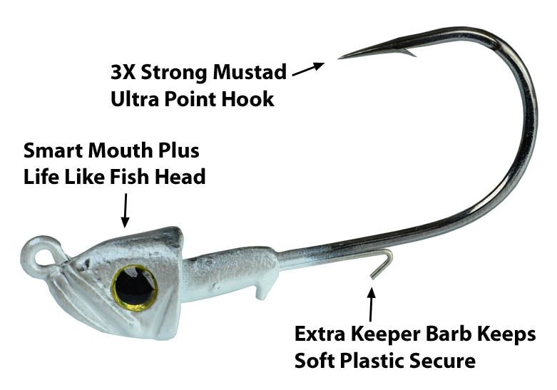 The Smart Mouth Plus Fish Head Jigs are designed to be fished in both fresh and saltwater and fulfills the demand for an assortment of hooks in a broad range of sizes from 1/8oz up to 2 oz.