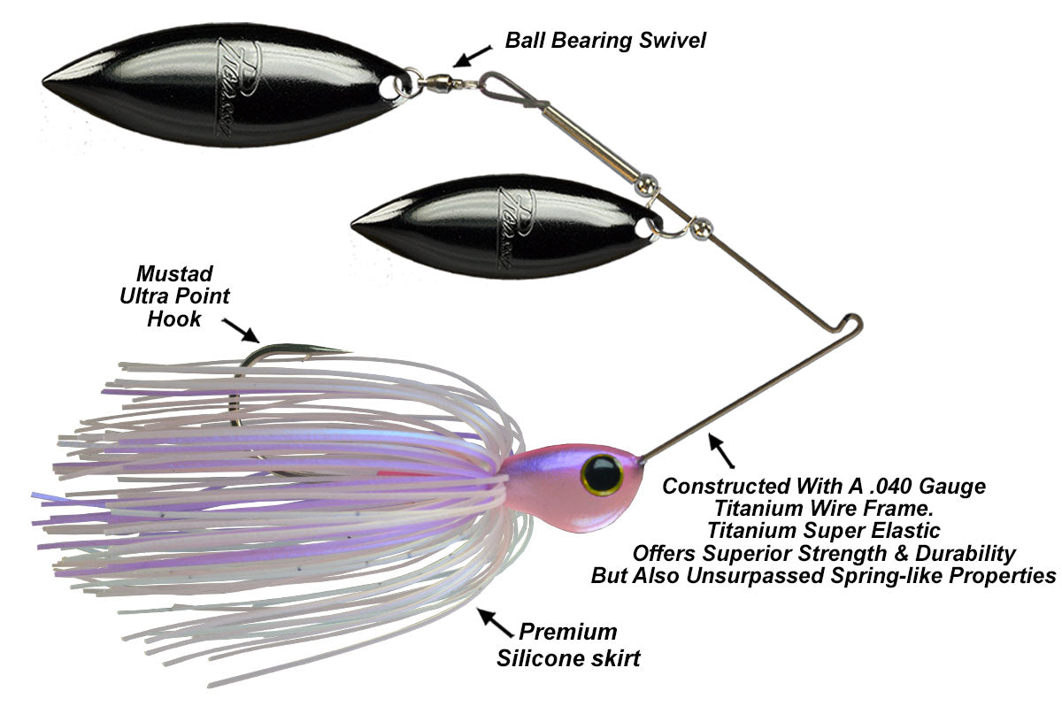 The .040” diameter titanium wire frame provides hard thumping action that draws the fish’s attention and gets those vicious strikes.